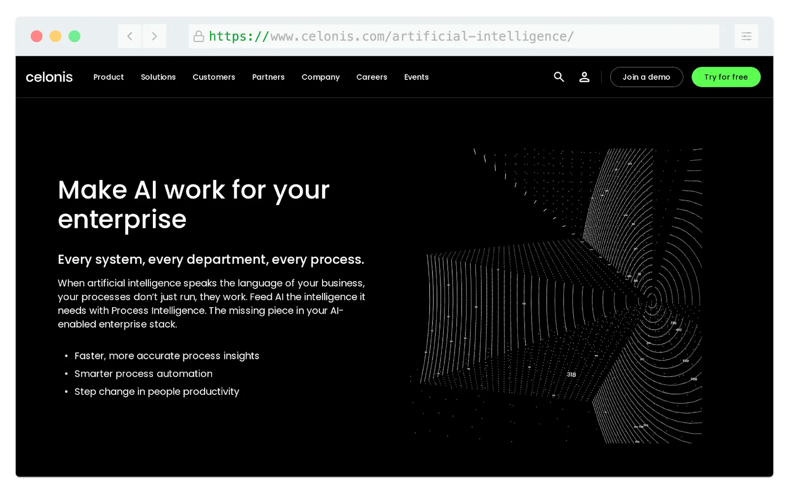 Celonis uses AI to track how users behave during customer service interactions. With tools like Process Intelligence and Process Mining, it lays out the common steps people take when tracking orders or requesting returns and spots where things slow down, repeat, or just don't work well.